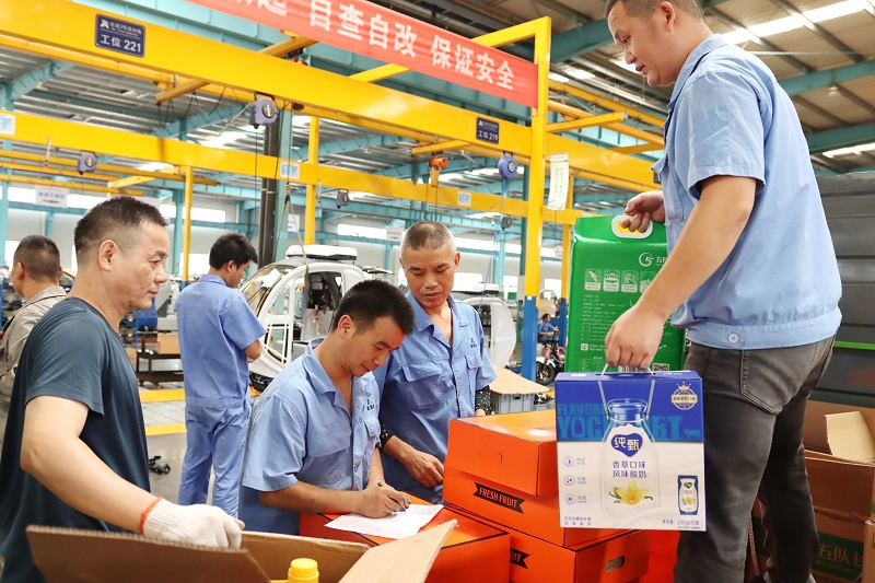 員工們分時(shí)段、分批次有序地進(jìn)行領(lǐng)取。分發(fā)過程中,工作人員有對(duì)名單的、有派發(fā)的,還有收拾包裝盒的,忙忙碌碌的身影在人群中來來回回穿梭,溫暖而有愛。