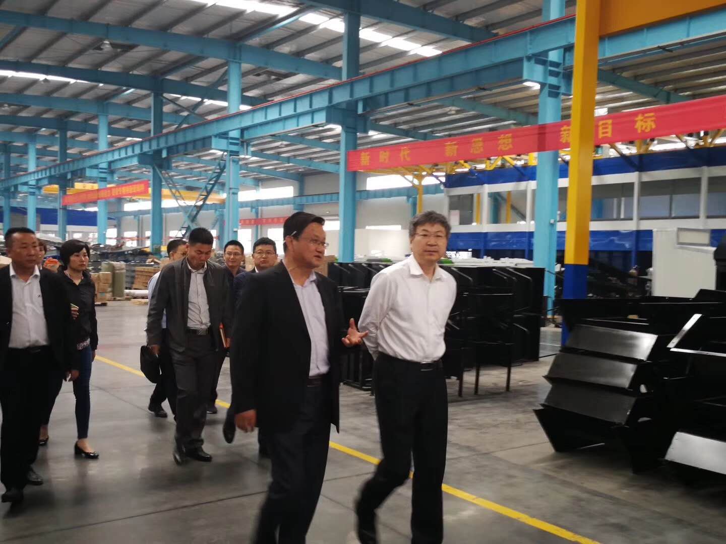 考察期間,尹總一行參觀了公司的生產基地,艾總詳細介紹了公司在新能源環衛車行業的發展歷程、技術先進性、國內外發展現狀及市場前景,期間,尹總就產品的科技創新,節能效益分析等問題進行了詳細咨詢,艾總一一解答。