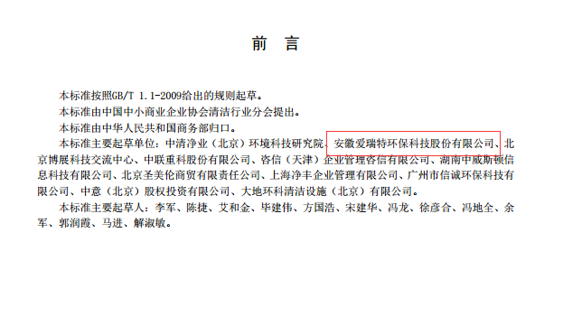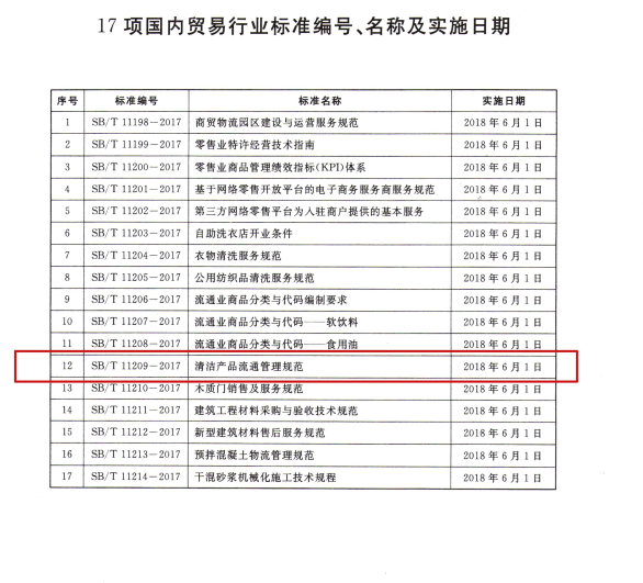 2018年6月1日,由愛瑞特主持起草的商務部行業標準《清潔產品流通管理規范》正式實施。
